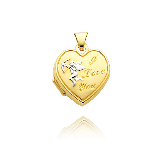 14K Yellow Gold & Rhodium Heart-Shaped "I Love You" Cupid Locket