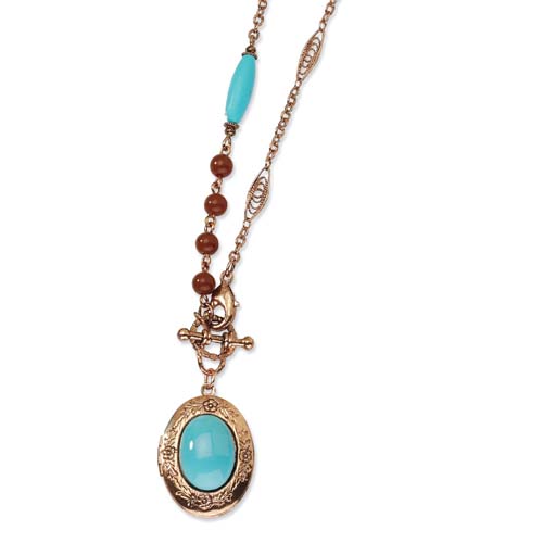 Copper-tone Aqua & Brown Beads 16" Locket Necklace