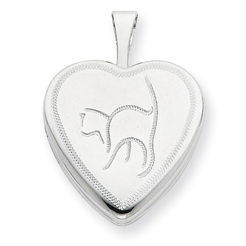 Sterling Silver 16mm Cat Heart Locket chain