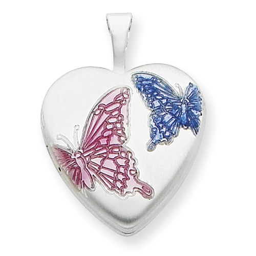 Sterling Silver 16mm Enameled Butterfly Heart Locket chain