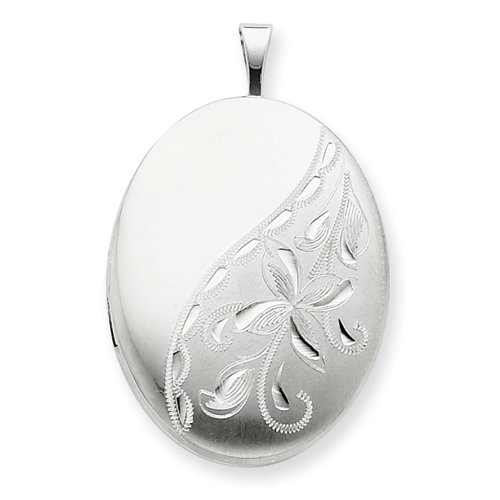 Sterling Silver 20mm Side Flowered Oval Locket chain