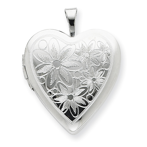 Sterling Silver 20mm with Daisies Heart Locket chain