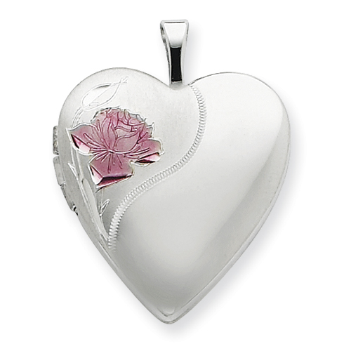 Sterling Silver 20mm with Enameled Rose Heart Locket chain