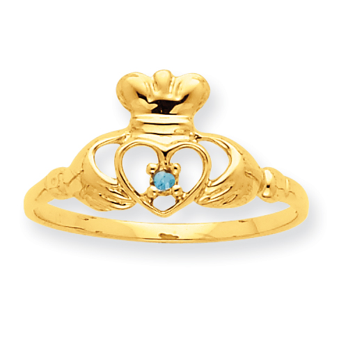 10k Polished Geniune Aquamarine Birthstone Ring