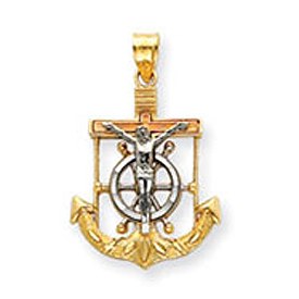 14K Two-Tone Large Mariner's Crucifix Pendant