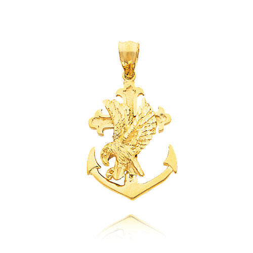 14K Yellow Gold Mariner Cross Pendant with Eagle