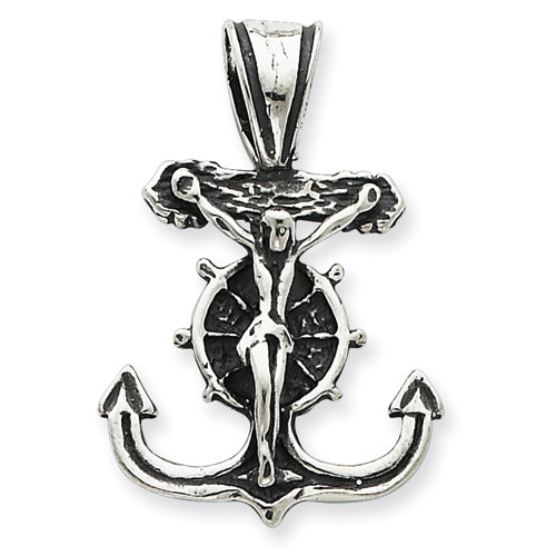 Sterling Silver Antiqued Mariner's Crucifix Pendant
