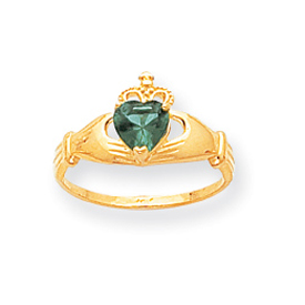 14K Gold CZ May Birthstone Claddagh Heart Ring