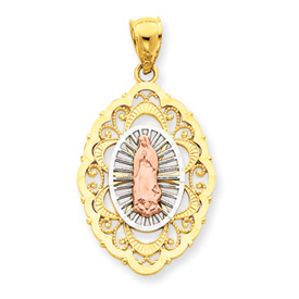 14K Tri-Color Gold Our Lady of Guadalupe Pendant