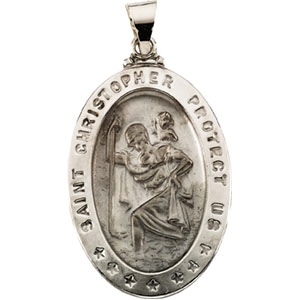 14K White Gold Hollow Oval St. Christopher Medal