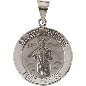 14K White Gold Hollow Round St. Jude Thaddeus Medal