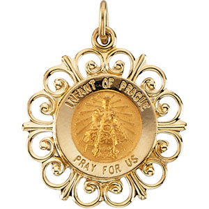 14K Yellow Gold 18.5 Rd Infant Of Prague Pend Medal