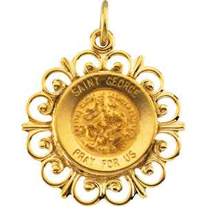 14K Yellow Gold 18.5 Rd St George Pend Medal