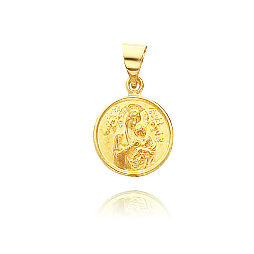 18K Yellow Gold Round Our Lady of Perpetual Help Medal