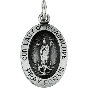Sterling Silver 18.5 X 13.5 Oval Lady Of Guadalupe Pnd Mdl