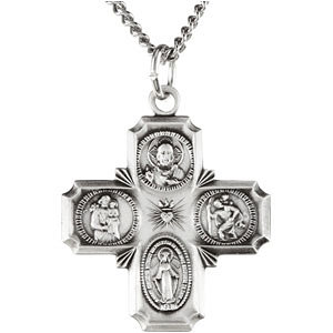 Sterling Silver 25.00X24.00 MM 4-way Cross Medal