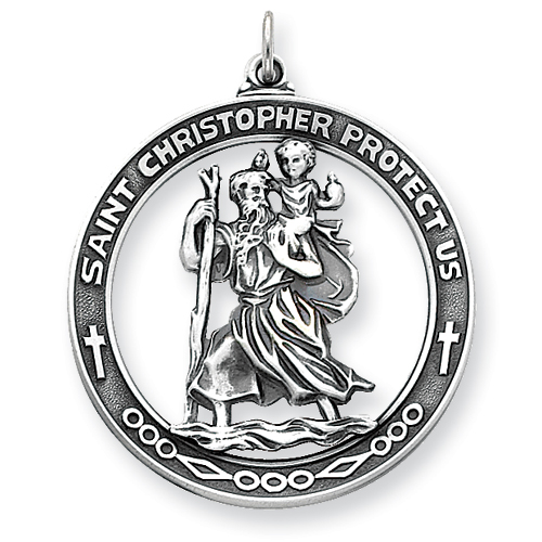 Picture of Sterling Silver Antiqued Saint Christopher Medal