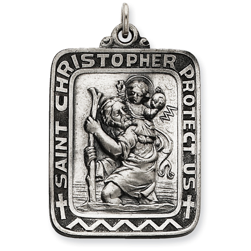 Picture of Sterling Silver Antiqued Saint Christopher Medal