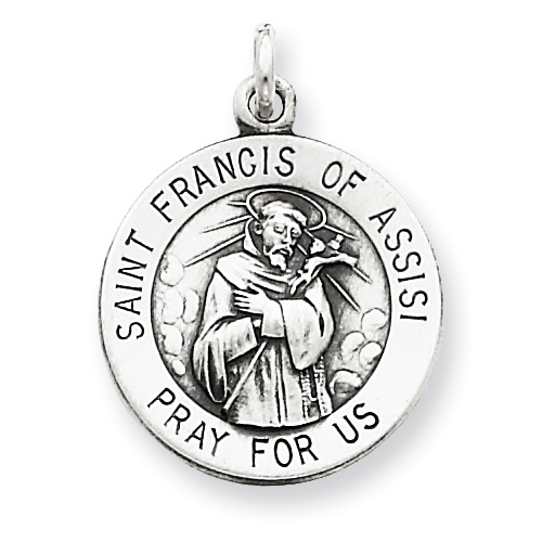 Sterling Silver Antiqued Saint Francis of Assisi Medal
