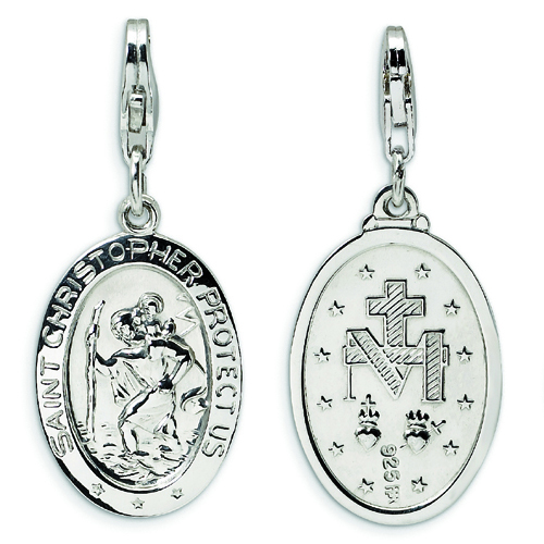 Sterling Silver Saint Christopher Medal With Lobster Clasp Charm