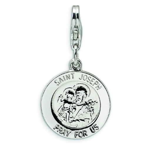 Sterling Silver Saint Joseph Medal With Lobster Clasp Charm