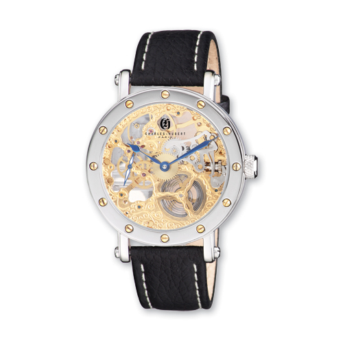 Mens Charles Hubert Leather Band Gold-tone Skeleton Dial Watch ring