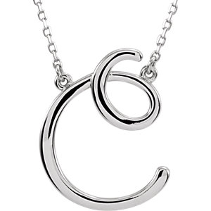 14kt White C 16" Polished SCRIPT INITIAL NECKLACE