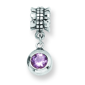 Sterling Silver Reflections Pink Cubic Zirconia Round Dangle Bead