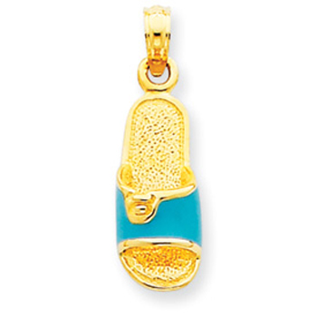 14K Gold Aqua Enameled Sandal Pendant