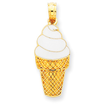14K Gold Enameled Vanilla Ice Cream Cone Pendant