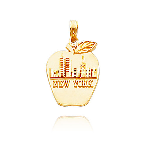 14K Gold Solid New York Skyline On Small Apple Pendant