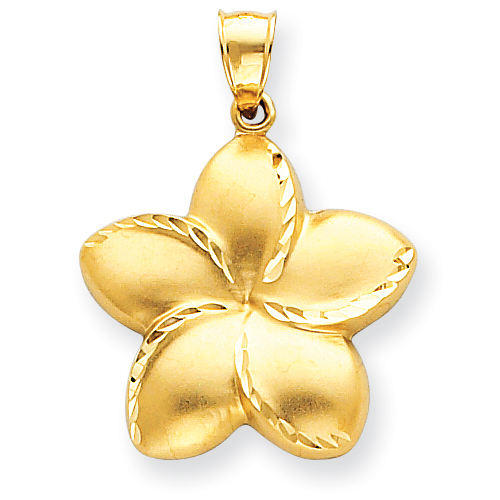 14k Satin Diamond-cut Open-Backed Large Plumeria Pendant