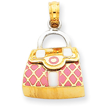 14K Two-Tone Gold Pink Enameled Purse Pendant