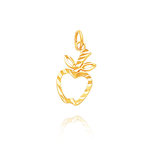 14K Yellow Gold Diamond-Cut Open Apple Charm