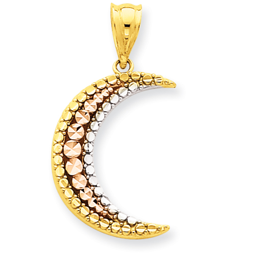 14K Yellow, Rose and Rhodium Diamond-cut Moon Pendant