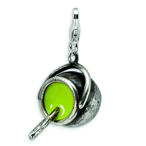 Sterling Silver 3-D Antiqued Enameled Witches Cauldron With Lobster Clasp Charm