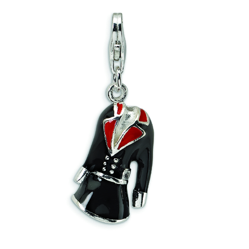 Sterling Silver 3-D Black & Red Enameled Coat With Lobster Clasp Charm