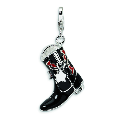 Sterling Silver 3-D Black & Red Enameled Cowboy Boot With Lobster Clasp Charm