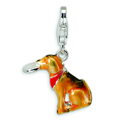Sterling Silver 3-D Enamel Light Brown Dog & Toy With Lobster Clasp Charm