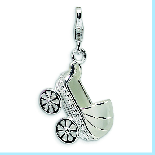 Sterling Silver 3-D Enameled Baby Carriage With Lobster Clasp Charm