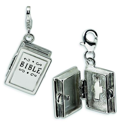 Sterling Silver 3-D Enameled Bible With Lobster Clasp Charm