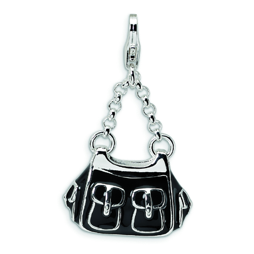 Sterling Silver 3-D Enameled Black Handbag With Lobster Clasp Charm