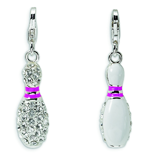 Sterling Silver 3-D Enameled Bowling Pin With Lobster Clasp Charm