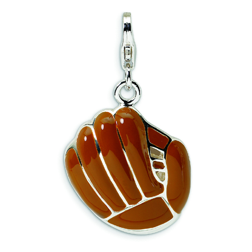 Sterling Silver 3-D Enameled Brown Baseball Mit With Lobster Clasp Charm