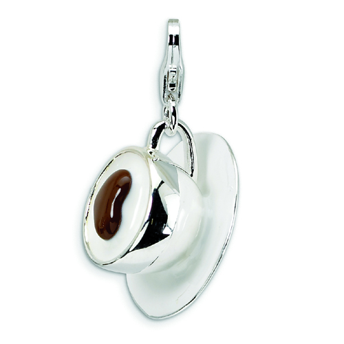 Sterling Silver 3-D Enameled Cappuccino With Lobster Clasp Charm