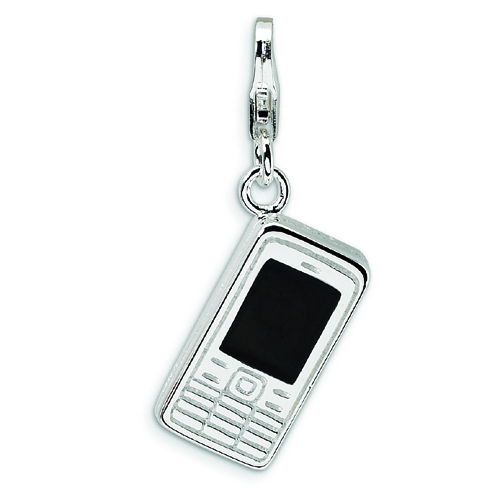 Sterling Silver 3-D Enameled Cell Phone With Lobster Clasp Charm