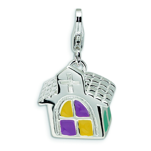 Sterling Silver 3-D Enameled Church With Lobster Clasp Charm