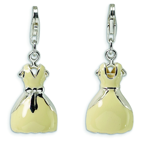 Sterling Silver 3-D Enameled Dress With Lobster Clasp Charm