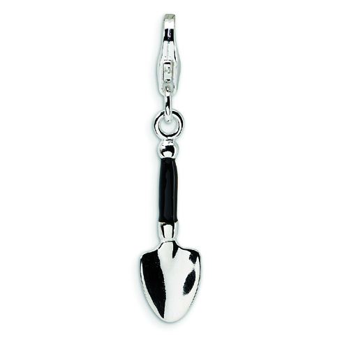 Sterling Silver 3-D Enameled Garden Trowel With Lobster Clasp Charm