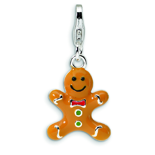 Sterling Silver 3-D Enameled Gingerbread Cookie With Lobster Clasp Charm